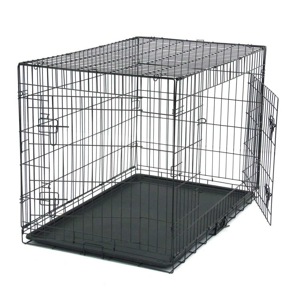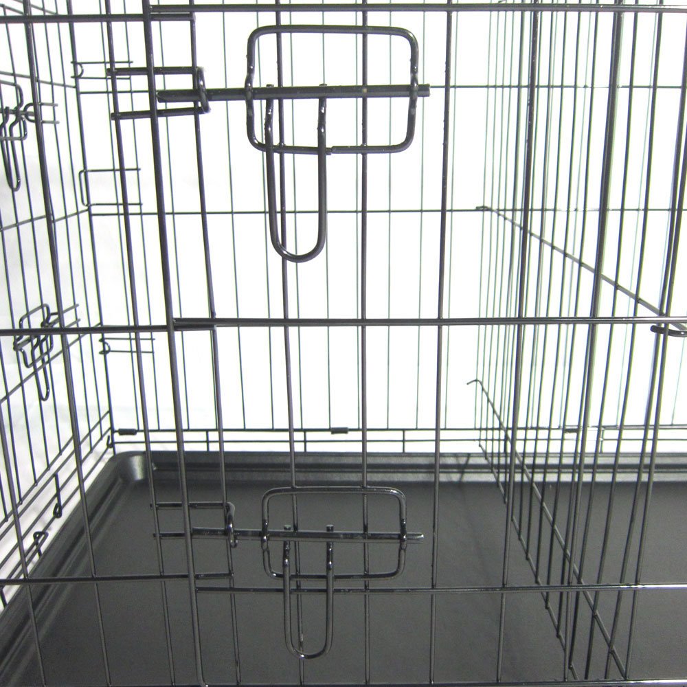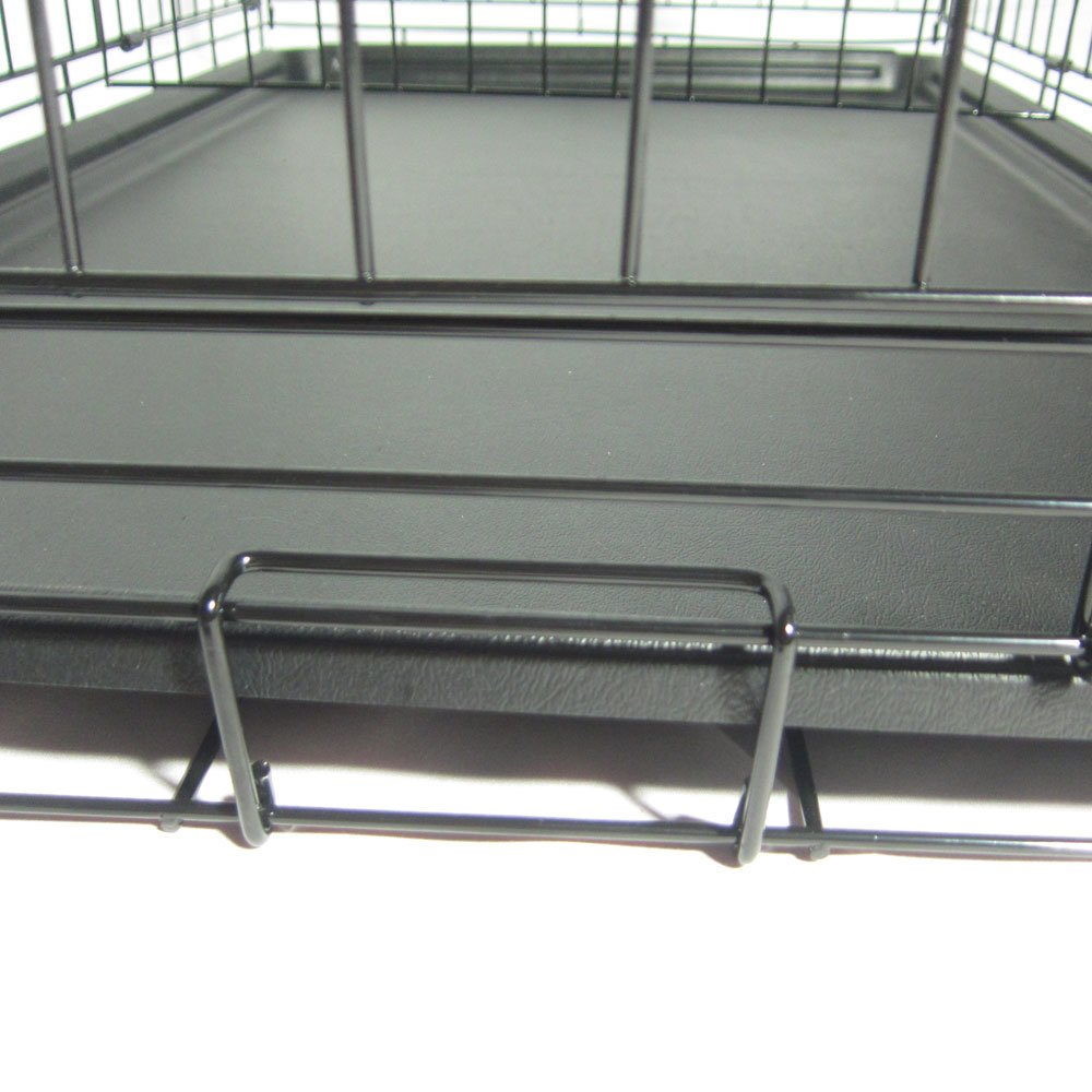 Features:1. Brand new and high quality2. Set-up and fold-down in seconds, no tools needed.3. Tough ABS plastic pan easy to clean. Free split divider4. Sturdy metal construction, durable antirust black epoxy coating5. Travel safe, take it anywhere6. Rounded edges to protect pet7. Detachable carrying handle8. Safe and secure slide bolt latch9. Comes with 1 divider10. Two doors for each cage, one on the side, one on the front