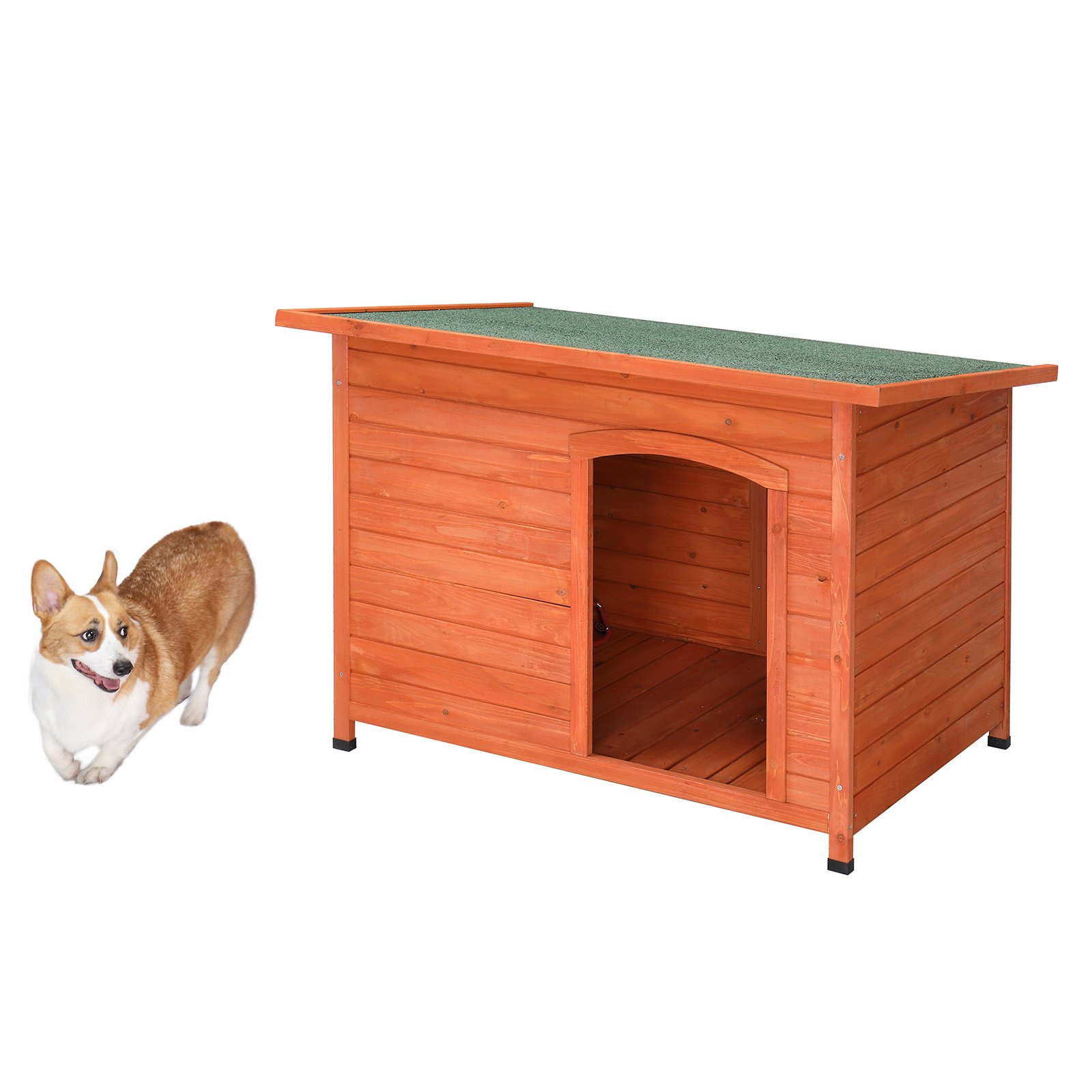 Waterproof Wood Dog House Pet Shelter Natural Wood Color L