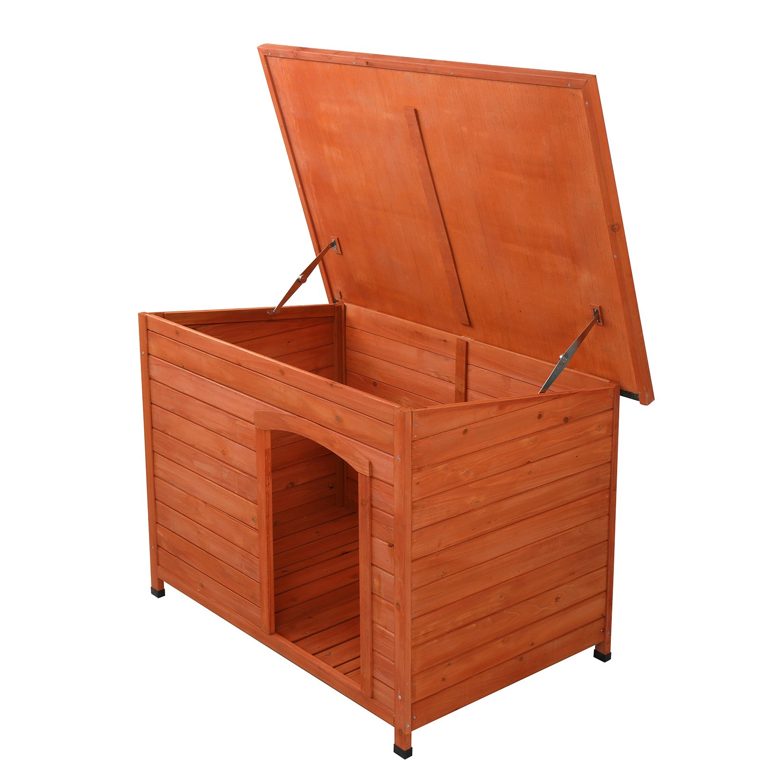 Home > Waterproof Wood Dog House Pet Shelter Natural Wood Color L